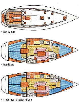 ROLL GENOA, ROLL GROSS, SPRAYHOOD, STEUERRAD, ELEKTR. ANKER WINSCH, WARMWASSER, BADEPLATTFORM + DUSCHE, WC + DUSCHE, COCKPITTISCH, LADEGERAT + LANDANSCHLUSS 220 V, ELEKTR. KUHLBOX, UKW - FUNK/RADIO |